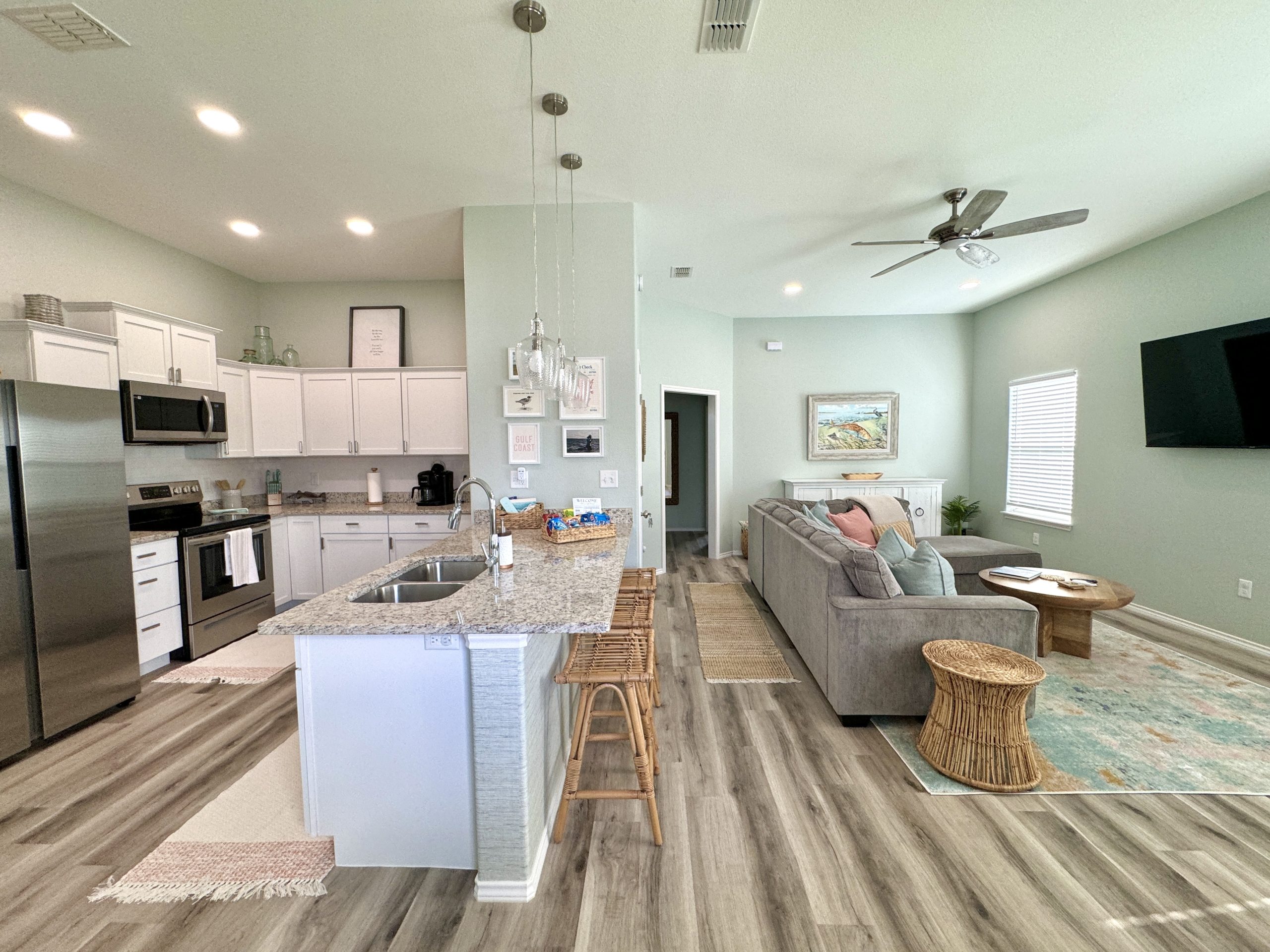 New construction with modern coastal vibes. All decor and furnishings are still in like new condition. We are always adding new pieces and updating anything that shows signs of wear.